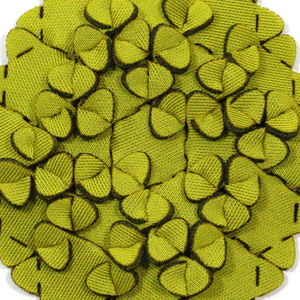 These lightweight earrings by Iris Nijenhuis from Amsterdam are made from small laser-cut fabric puzzle pieces that have been assembled in her studio. No glue or stitching required.