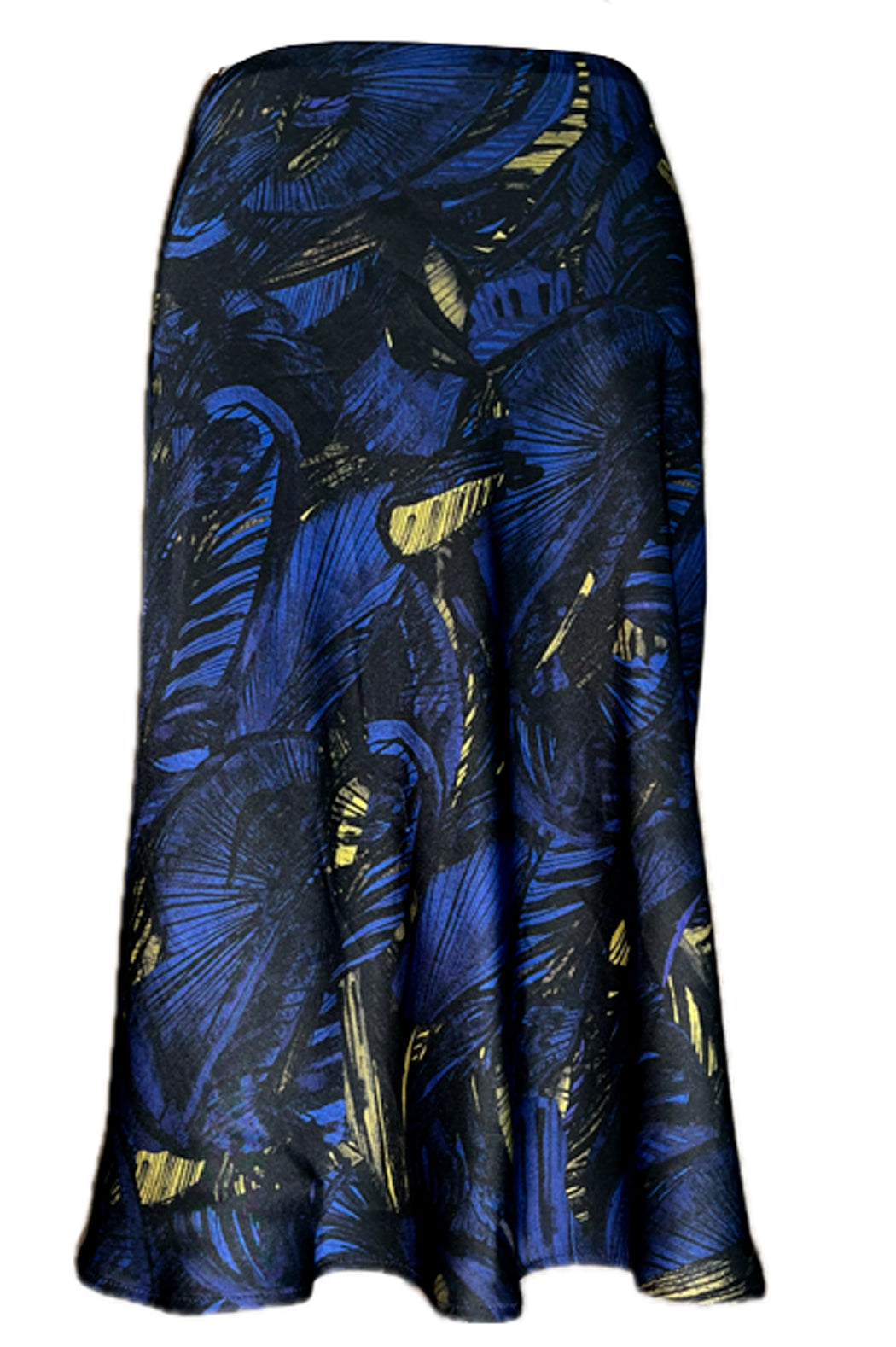 Our flared skirts literally flow around the legs. Thanks to the bias cut, the skirt is narrow at the top and wide at the bottom.